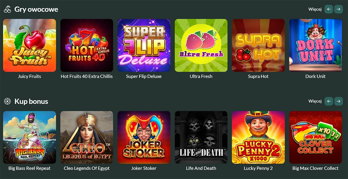 Oferujemy ponad 5400 gier hazardowych od czołowych dostawców, które obejmują automaty online z wysokim RTP, profesjonalne gry na żywo oraz jackpoty multi-milionowe. Regularnie aktualizujemy naszą kolekcję o najnowsze premiery.