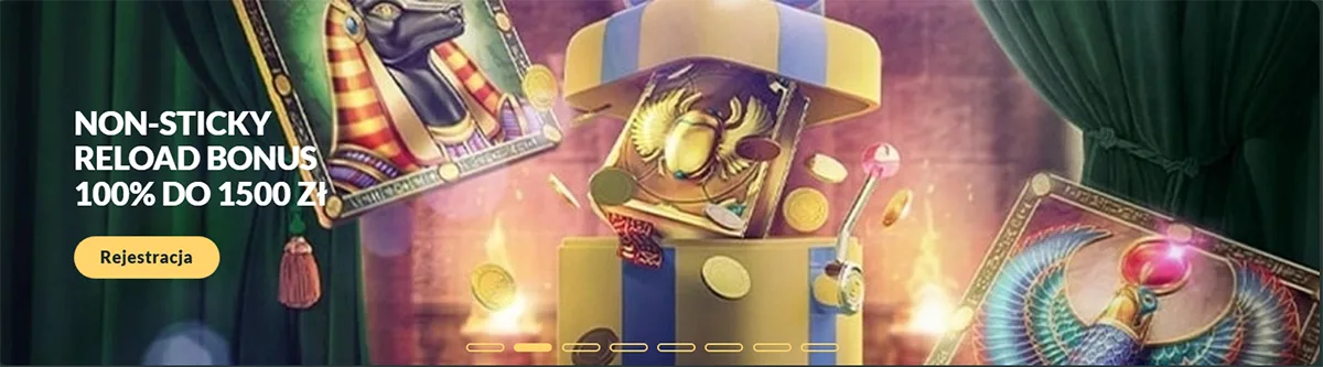 Zapewniamy kilka opcji gry bez ryzyka dla ostrożnych graczy. 20 darmowych spinów bez depozytu to idealny start bez inwestowania własnych pieniędzy. Nasz 7% tygodniowy cashback działa bez wymagań obrotu. Otrzymujesz zwrot części przegranych środków bezpośrednio na konto bez dodatkowych warunków. Bonus reload 100% do €300 + 100 darmowych spinów pozwala na kolejne gry z podwójną wartością depozytu. Minimalna wpłata wynosi €10 z obrotem x50.