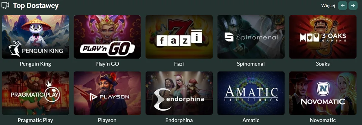 Wprowadzamy nowe gry kasynowe każdego tygodnia, współpracując z ponad 70 dostawcami gier. Nasze regularne aktualizacje gier gwarantują, że zawsze znajdziesz coś świeżego do przetestowania. Dzięki współpracy z takimi dostawcami jak: